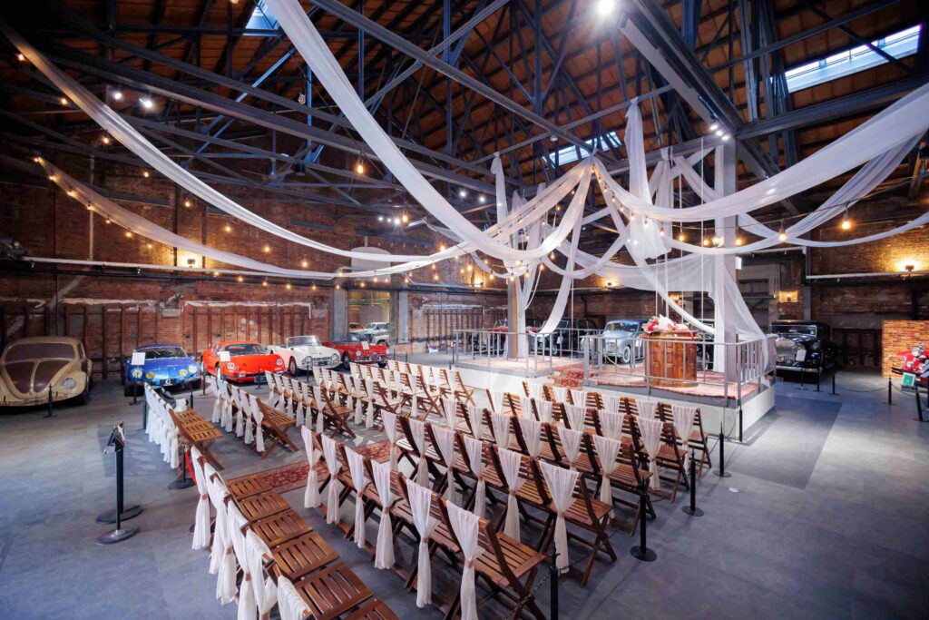プロポーズの後は、印象的な赤レンガのカーミュージアムで記念撮影をして、リエさんの好きなところを100個書いたメッセージブックをプレゼント。