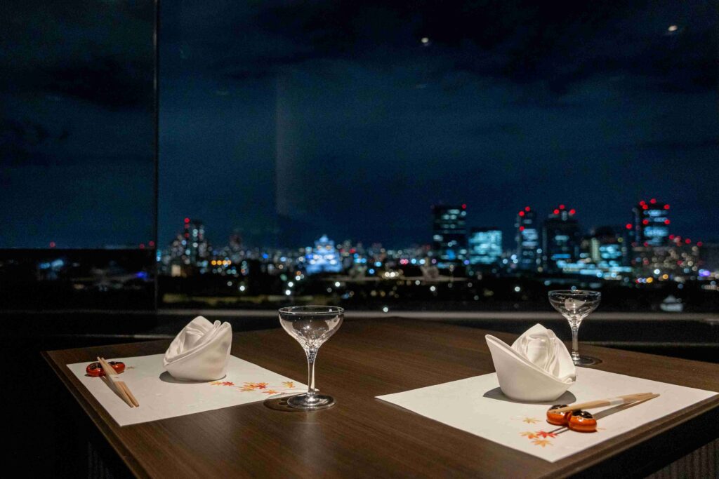 最大4組16名のメインカウンターは大阪の夜景が一望でき、プロポーズにふさわしい非日常の特別感が漂います。