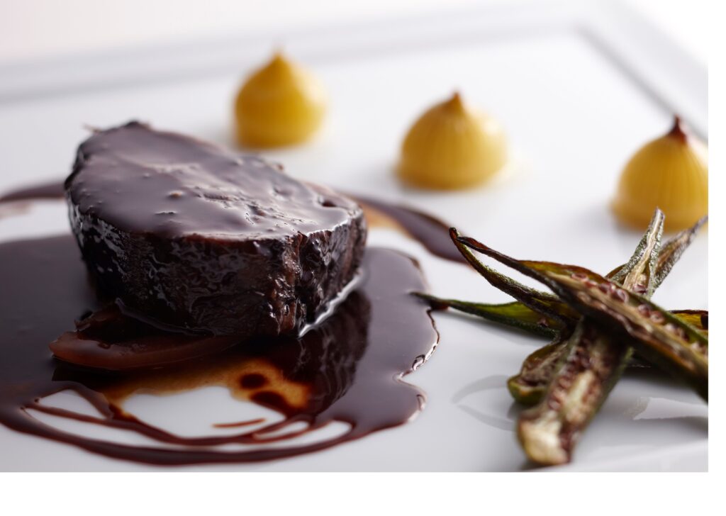 黒毛和牛や新鮮な海の幸、旬の野菜を用いた一皿一皿は、繊細で深みのある味わい。